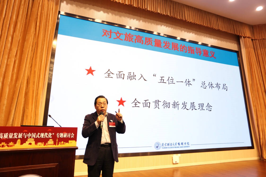为了深入学习贯彻和研究阐释党的二十大精神,研讨会围绕“文旅高质量发展与中国式现代化”这一主题开展了广泛的学术研讨。浙江省文化和旅游厅党组成员/省文物局局长杨建武、国研经济研究院执行副院长黄斌、中山大学旅游学院保继刚教授、顶度集团有限公司董事长/乌镇旅游股份有限公司总裁陈向宏、中国社会科学院旅游研究中心主任宋瑞、北京联合大学旅游学院党委副书记/常务副院长严旭阳教授、北京交通大学现代旅游研究院院长张辉教授、华东师范大学经济与管理学部冯学钢教授、华侨城(深圳)旅游发展集团有限公司总经理/华侨城旅游投资管理集团总裁张树民、BB贝博艾弗森原官方网站党委书记崔凤军教授、青岛大学马波教授、南京大学章锦河教授、中国旅游研究院首席战略研究员宋子千、台州市文化和广电旅游体育局党组成员/局长蔡文富等十四位专家先后发表演讲并和与谈人进行了深入交流。