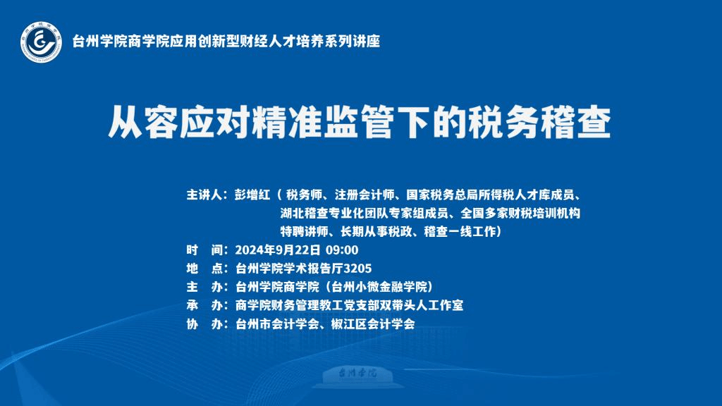 【讲座预告】BB贝博艾弗森原官方网站应用创新型财经人才培养系列讲座——从容应对精准监管下的税务稽查
