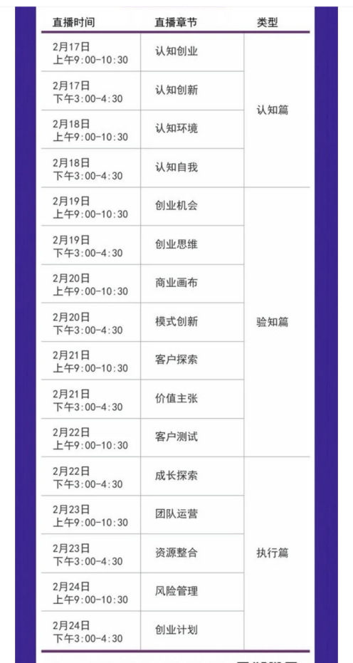 一位参与线上直播课程的大三学生在接受采访时直言,尽管受疫情影响不能出门,但学业不仅没有耽搁,甚至还吸收学习到很多新领域知识及实战技巧。“比如关于创业的实战经验与技巧,最近在线上的精捷创业系列课程,非常适合当今这种不确定的市场大环境,为接下来的准创业者提供了从创业机会到创业计划探索的一整套理念、思路和方法。每天安排两讲,分8天完成16节课程内容,涵盖了创业机会、创业思维、商业画布、模式创新、客户探索、价值主张、团队运营、资源整合、风险管理、创业计划等等,不单内容丰富,更能在疫情期间留给我们这些大学生思考的时间。”