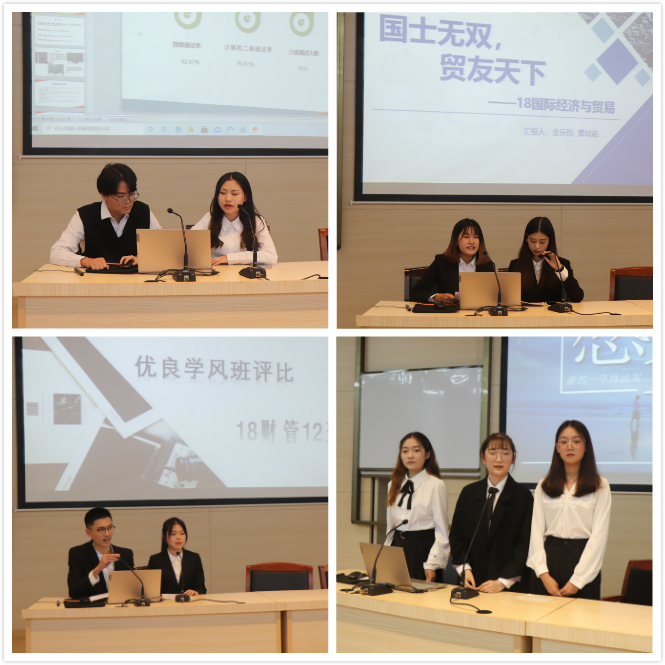 此次评选活动各年级共15个班级参加,各班按照抽签顺序展示PPT,班级代表围绕学风建设、学科竞赛、班级活动等方面展示其独特风采,各班班主任进行精彩推荐发言。随后的答辩环节,班级代表与评委老师热切交流研讨,更加深入思考班级各项学风建设数据背后的内在关联。