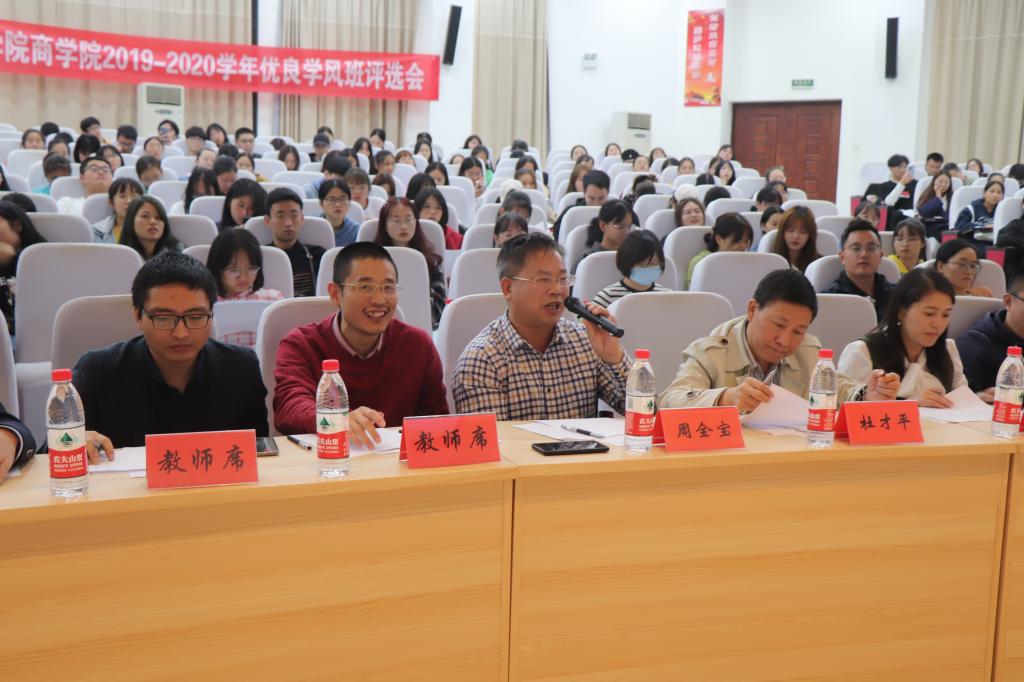 最后,院长杜才平作总结讲话,他充分肯定了各班为本次优良学风班所做的准备,表扬了各班PPT制作精良,班级代表充分展示了本班的风采,并强调了专业性社团活动及学科竞赛对班级学风建设的重要性,激励同学们奋发上进,明确了学风建设的方向和重点。