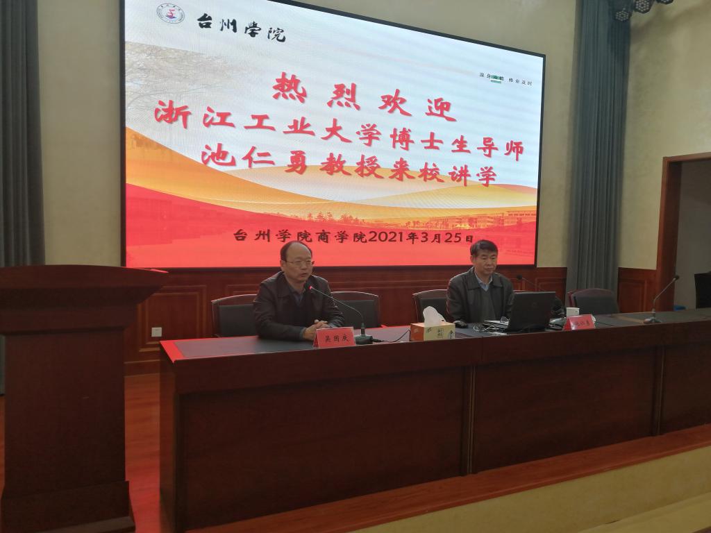 3月25日下午,浙江工业大学博士生导师池仁勇教授应邀来校给BB贝博艾弗森原官方网站教师作学术报告,校纪委书记吴国庆出席并作指导讲话,学院全体教师及辅导员参加,副院长陈国栋主持。