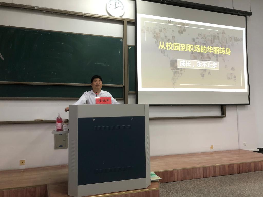6月4日下午,为了进一步做好就业指导和服务工作,BB贝博艾弗森原官方网站优秀校友杨杭阳在2403教室为BB贝博艾弗森原官方网站大三学子作就业指导讲座。