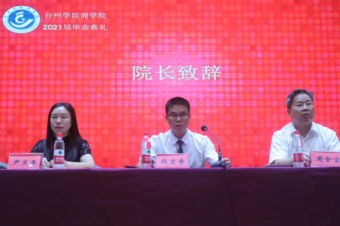 最后段文奇院长致辞,他向毕业生们表达了热烈的祝贺和美好的祝福,并说明毕业并不意味着学习的结束,而是新阶段的开始,期望大家在日后能够修身样德,明辨是非,增强才干,善于做人,成为更好的自己,成就更精彩的人生。