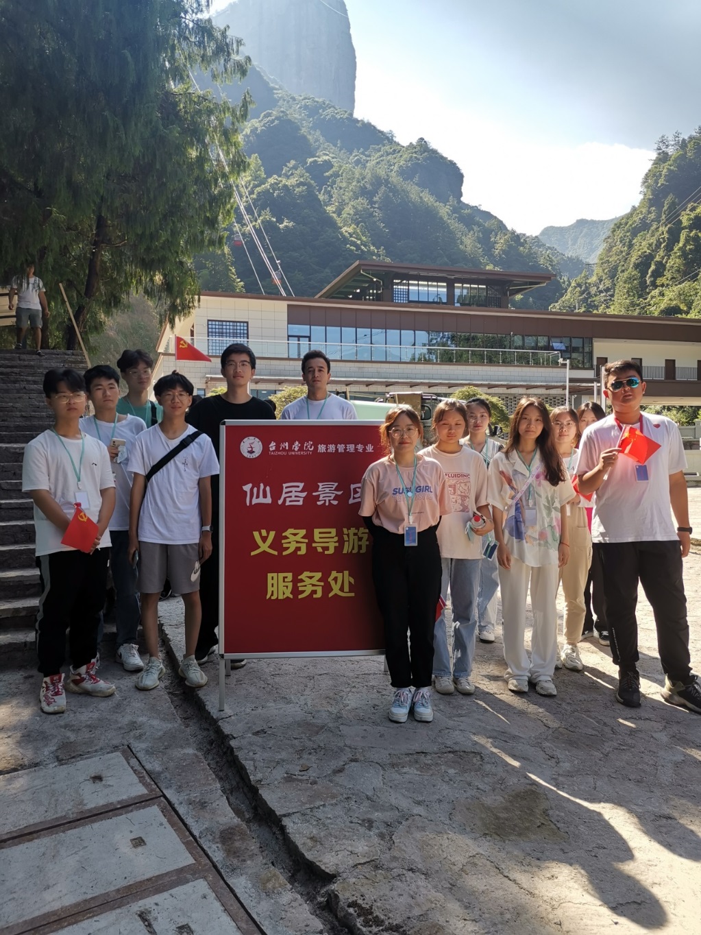 正值建党百年的喜庆日子,2021年7月3号,BB贝博艾弗森原官方网站20旅管班的同学们踏上了景区义务导游实习的征程,面对未知的实习,同学们都略显激动和忐忑。我们在仙居绿道中感受到城市慢生活的休闲和绿色健康,跟着优秀的导游小姐姐,对着导游词,进行了神仙居细致的踩线,我们对即将开始的导游实习充满了信心和期待。第二天一大早,同学们分成两个小组,分别在南门、北门入口设义务导游点,等待游客……为了庆祝建党百年,同学们精心准备了国旗、党徽等爱心贴,准备送给到访神仙居的游客。