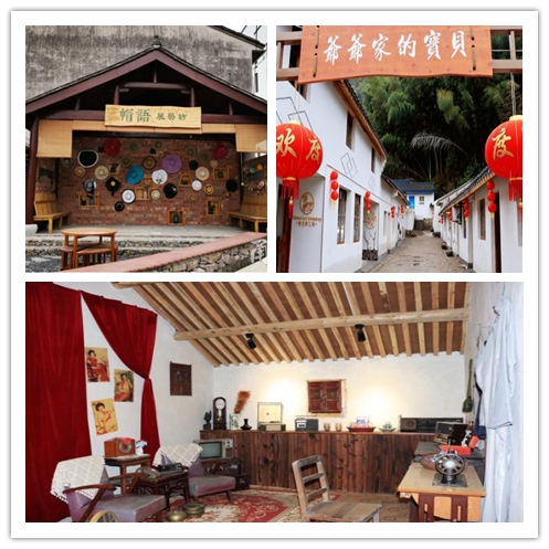 村支书还介绍说,城杨村本就是一个千年古村,专家通过艺术赋能村民,将城杨村的传统山水风景与艺术家设计的作品融为一体,让城杨在沉寂多年后蜕变,一跃成网红。随后,村民们还通过因地制宜,就地取财,变废为宝,原先不起眼的瓦缸变成了如今溪畔灯箱,原本堆放建筑垃圾的角落变成了游客拍照打卡点。例如,“爷爷家的宝贝”是村里的特色庭院,墙面上涂抹着富有年代感的墙画,展览室分为创艺之家、愚木集、岁月歌、渔樵间、烟尘沸等,房间里的陈设都是上世纪的老物件,蕴藏了几代人的青春,浓郁的乡愁记忆扑鼻而来。从改造到成形,短短9个月,城杨村从一个经济薄弱村蝶变成国际旅游村雏形。