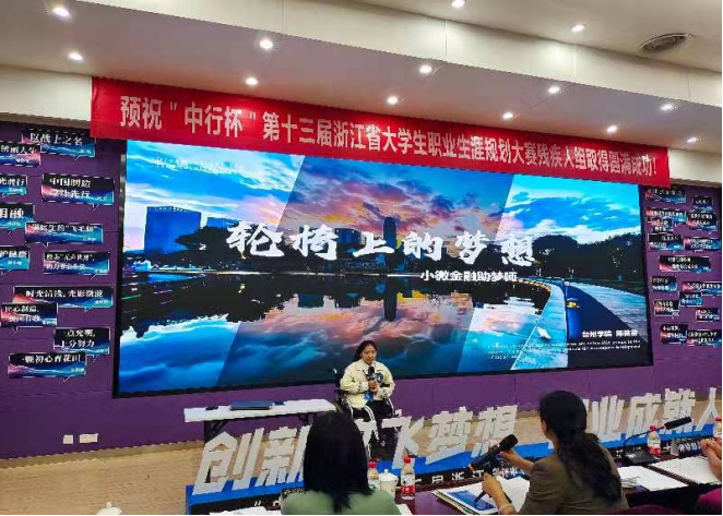 10月14日,“中行杯”第十三届浙江省大学生职业生涯规划大赛残疾人组在浙江特殊教育职业学院举行。我校BB贝博艾弗森原官方网站学生陈苗苗表现出色,以全场最高分获得大赛一等奖,同时兼获最佳答辩奖。这是我校在省职规赛历史上新的突破,首次获得一等奖。