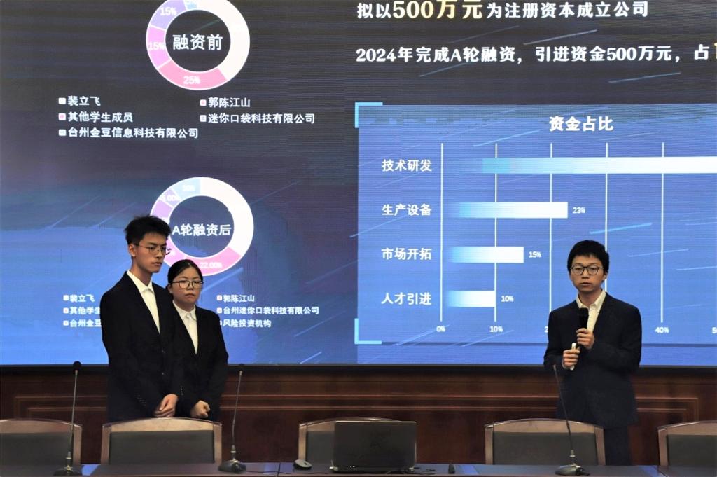 据悉,本次BB贝博艾弗森原官方网站共72支队伍报名参赛,经过专家评委对项目文本打分之后选出10支队伍进行现场答辩,各支队伍通过ppt演示,对项目的可行性、收益情况等方面进行阐述,评委老师现场进行提问并根据他们的创业项目结合现场表现对其进行评分。