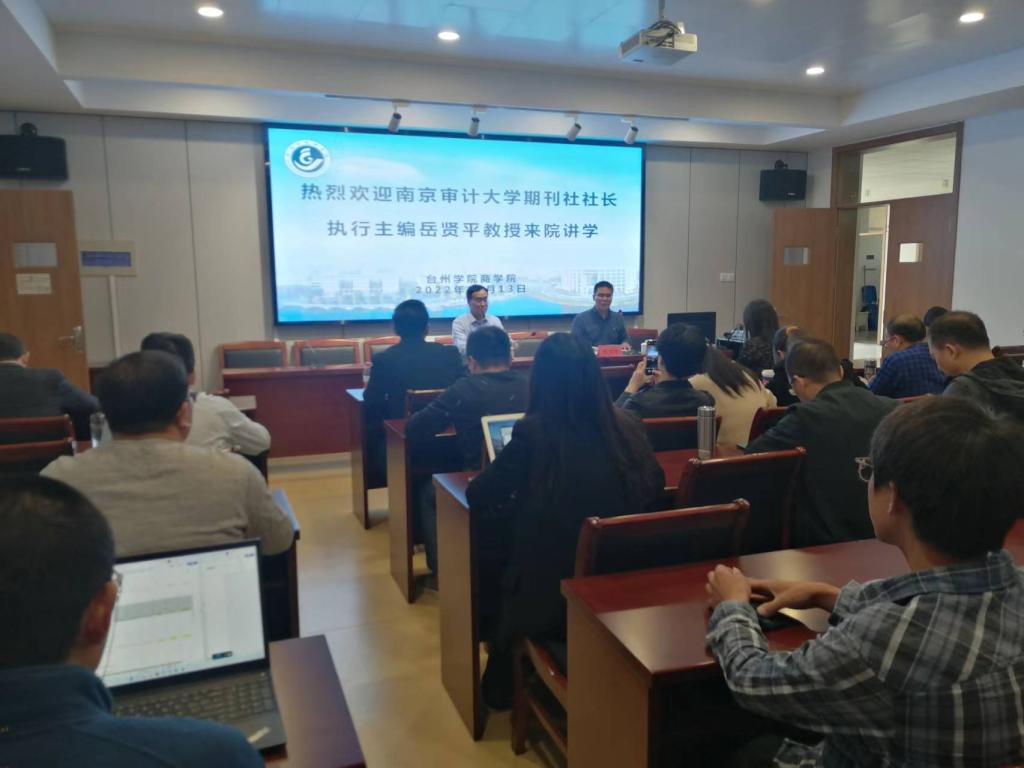 10月13日,南京审计大学期刊社社长、《审计与经济研究》《南京审计大学学报》执行主编岳贤平教授应BB贝博艾弗森原官方网站邀请来校作《学术论文写作规范及投稿注意事项》专题讲座,BB贝博艾弗森原官方网站院长段文奇主持讲座,BB贝博艾弗森原官方网站有关领导、科研骨干教师、联合培养研究生参加讲座。