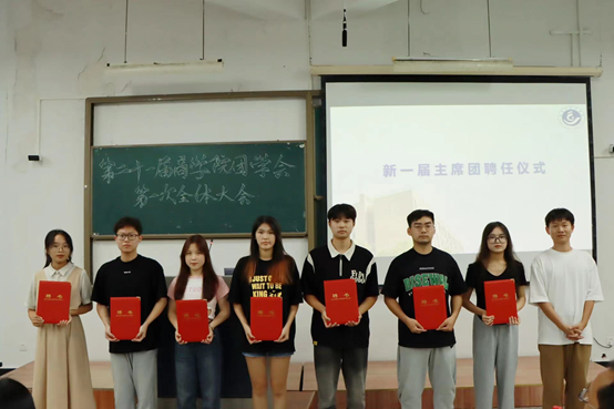 大会伊始,首先举行了受聘仪式,由项民为新任主席团颁发聘书。随后,陈斌岚向大家表示热烈祝贺,并提出几点希望:一是团结协作,积极协助老师做好各项工作;二是尽快熟悉本部门的工作内容,积极融入,相互支持,高效完成工作;三是要平衡好工作和学习的时间,有计划、有条理地安排时间,有序、专注、高效地完成任务。接着,团学会主席团成员、各部门成员集体亮相,纷纷表示将以责任心和使命感担当起自己的角色,充分发挥各自的优势,共同为BB贝博艾弗森原官方网站贡献一份自己的力量。