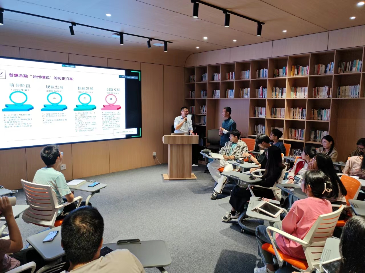 何晶晶报告的主题是“台州银行小微金融实践”,她向同学们讲述了台州小微金融行业的发展及台州银行如何坚守小微市场定位,也介绍了如何为客户提供更优质的产品和服务。