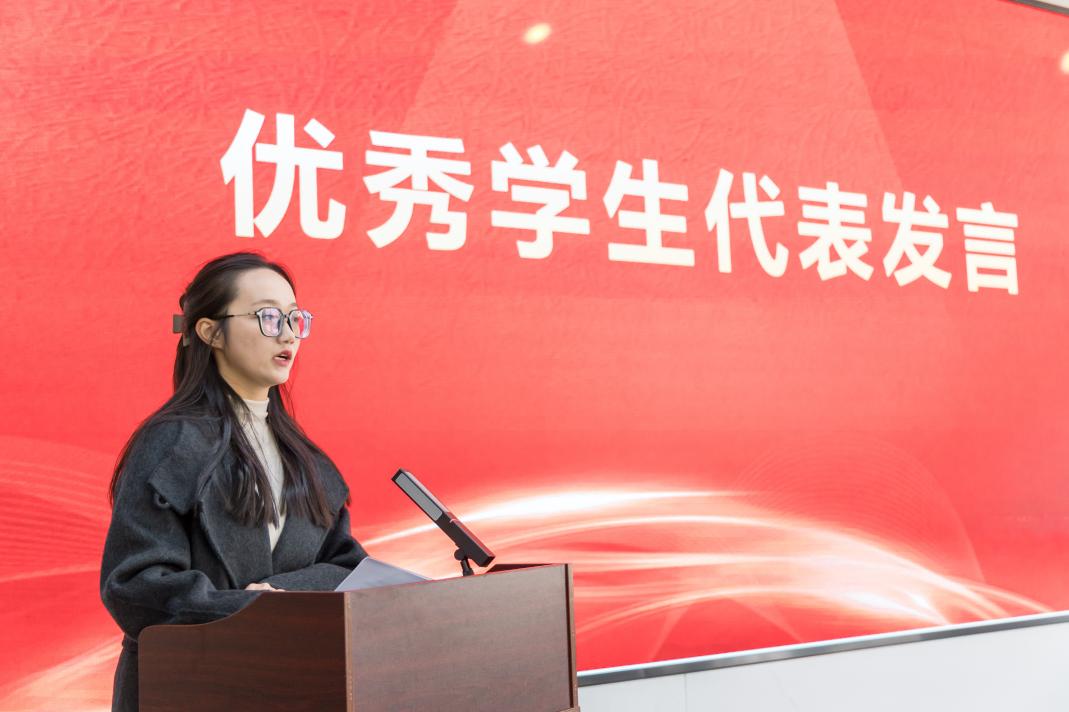 优秀学生代表胡玲燕同学发言表示:很感谢学校为我们提供了这次实践学习的机会。在仙居实践学习一个月来,全班同学深入仙居的特色乡村、酒店、景区、文化场馆,不仅开阔了视野,也让我们对目前旅游市场的发展现状和行业前景有了更进一步的认识和思考。使我们更加坚定地在将来旅游行业中发挥自己的专业知识和专业技能,力争成为一名优秀的旅游从业者,为推动旅游行业的发展做出自己的贡献。