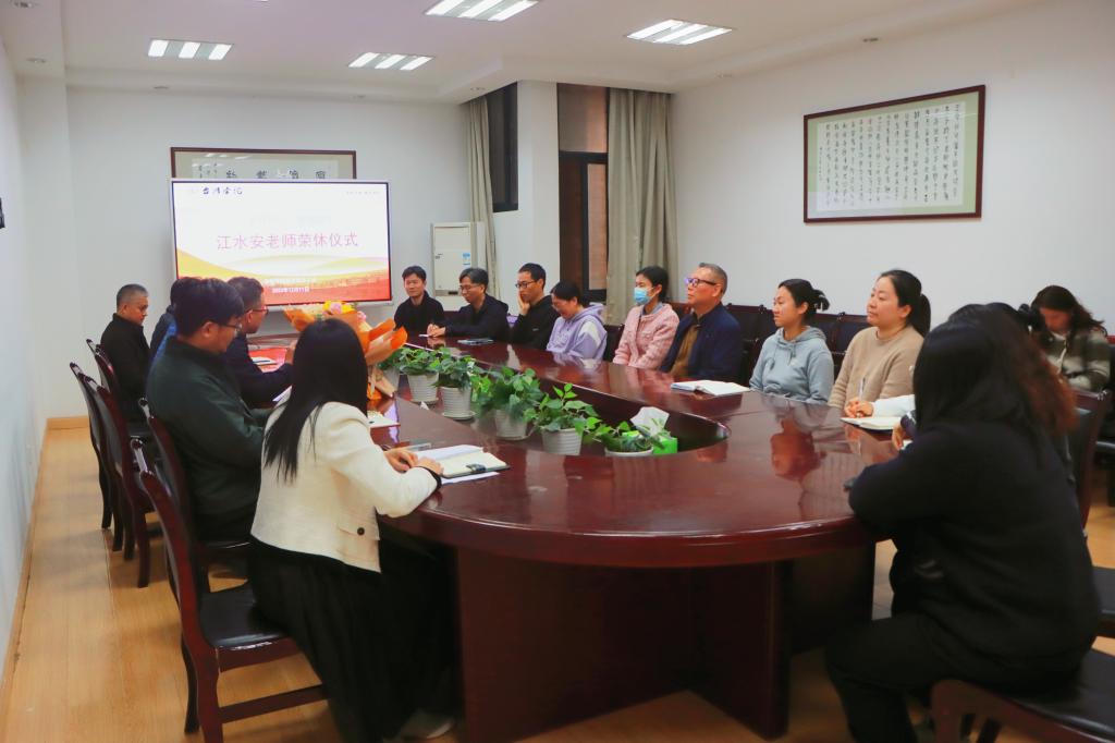 光阴荏苒,弦歌不辍。2023年12月11日,BB贝博艾弗森原官方网站在201会议室为江水安老师举行荣休仪式,学院领导班子及部分教职员工代表参加,仪式由学院党委副书记陈斌岚主持。