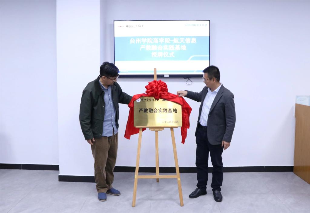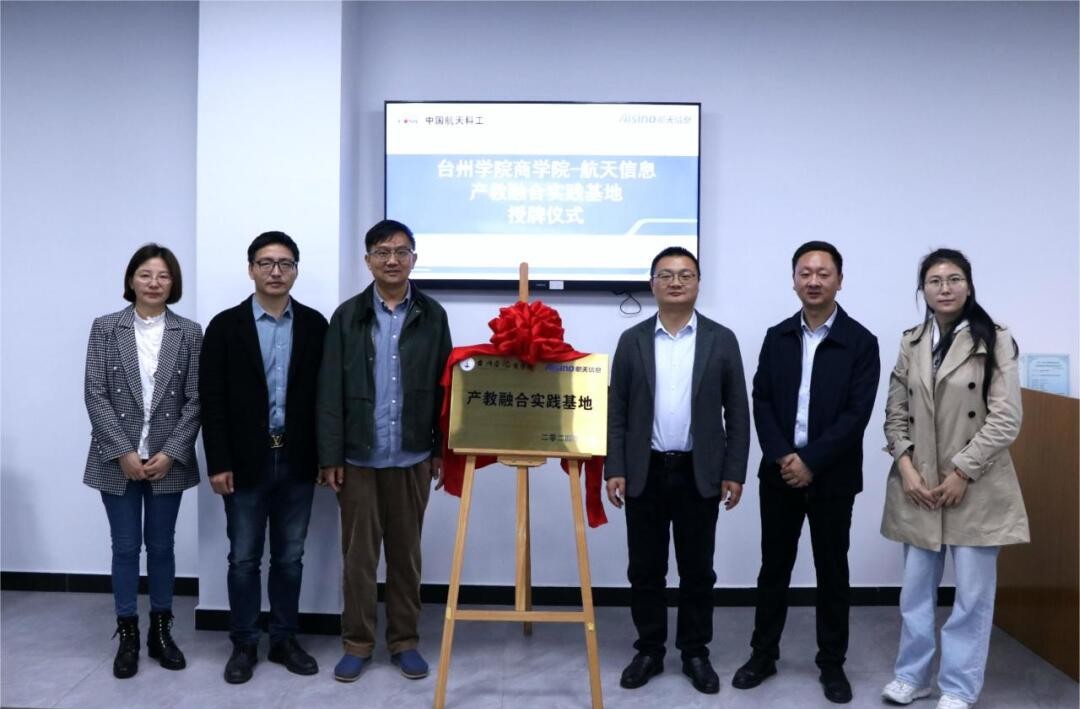 3月26日上午,BB贝博艾弗森原官方网站与浙江爱信诺航天信息技术有限公司台州分公司(以下简称台州航天信息)产教融合实践基地授牌仪式在台州航天信息举行。BB贝博艾弗森原官方网站副院长陈国栋、财务管理系主任廖正华、李美芳老师;台州航天信息总经理鲁军、综合事业部经理黄官松、行政人事部经理杨妙霞出席授牌仪式。
