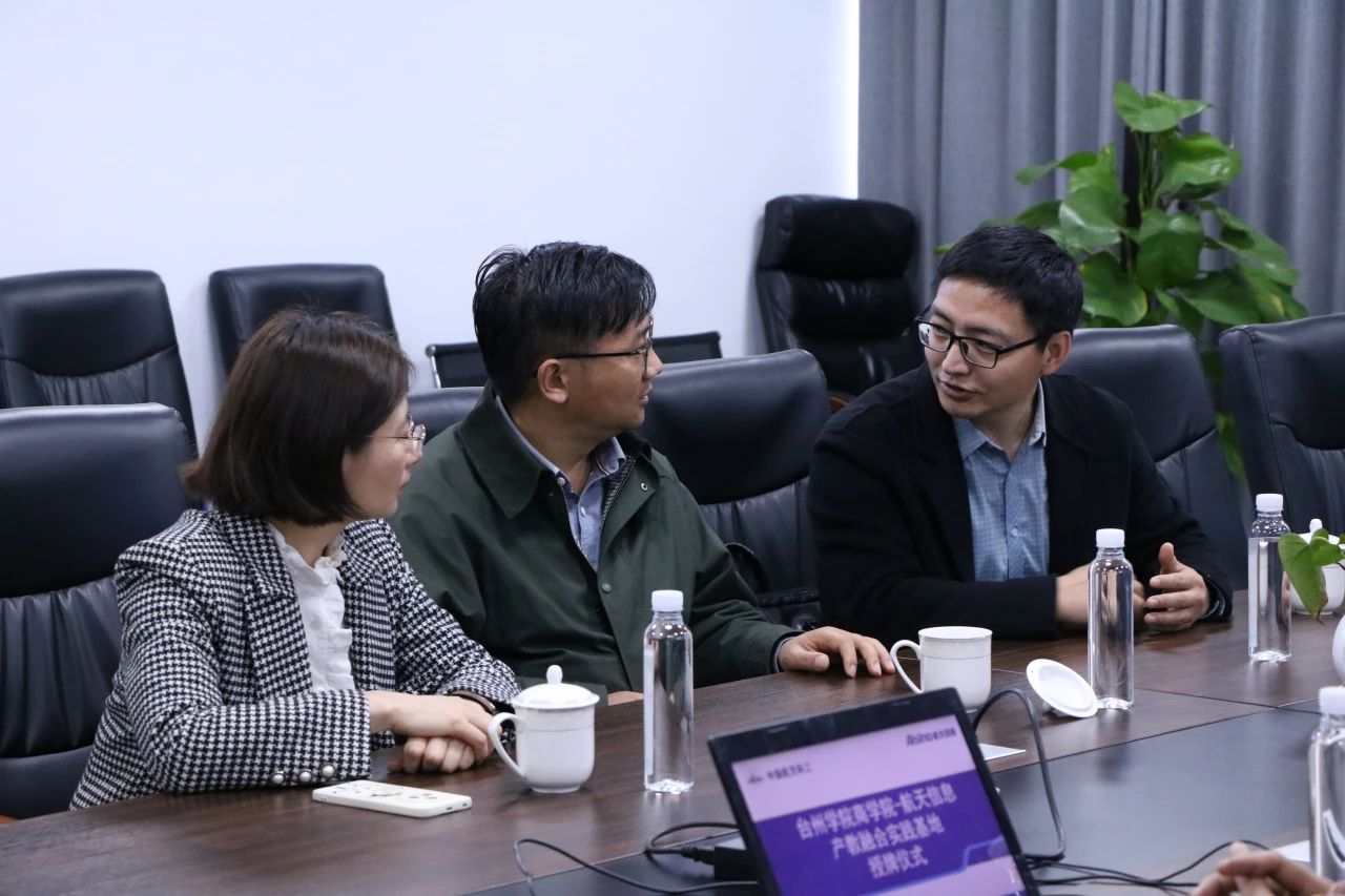 授牌仪式前,双方先开展了产教融合座谈会,黄经理介绍了台州航天信息的发展历程、主营业务、职工队伍建设等基本情况,并就航天信息提供的全链路无纸化解决方案与学院相关专业的契合度及让学生通过无纸化产品的应用,实现校企的无缝衔接等方面进行了探讨和交流。