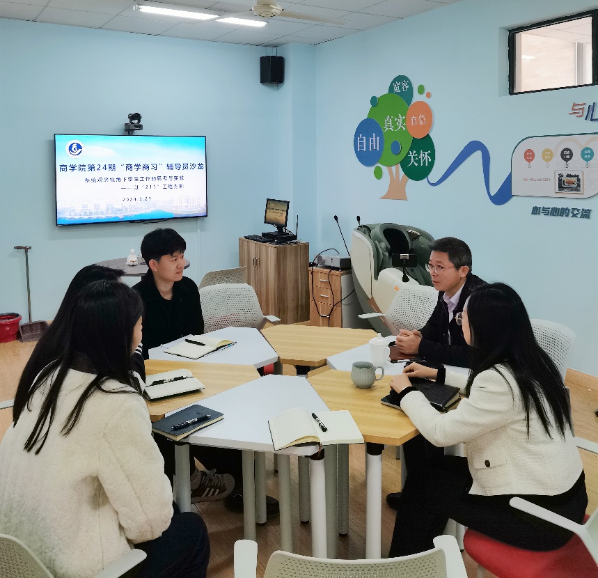 为进一步提升BB贝博艾弗森原官方网站辅导员学生工作的针对性和有效性,3月29日,以“系统观念视角下学生工作的思考与实践”为主题的 “商学商习”辅导员沙龙在BB贝博艾弗森原官方网站307室举行。会议特别邀请了建筑工程学院党委副书记林霖为BB贝博艾弗森原官方网站全体辅导员作经验分享与指导,BB贝博艾弗森原官方网站党委副书记陈斌岚及全体辅导员参加此次会议。