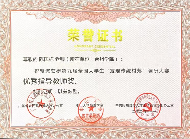 11月23日,竞赛颁奖典礼在阳朔成功举行。广东省人民政府地方志办公室、桂林市委人才办、中山大学旅游学院及阳朔县相关单位等领导嘉宾出席颁奖典礼。我院实践队成员作汇报展示,指导老师陈国栋作优秀指导老师经验分享。