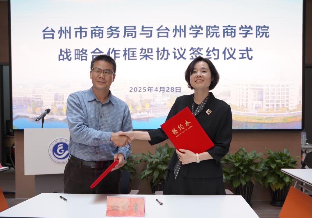 4月28日上午,台州市商务局与BB贝博艾弗森原官方网站战略合作框架协议签约仪式在BB贝博艾弗森原官方网站一楼中厅隆重举行。台州市商务局党组副书记、副局长邵海丽率队莅临现场,BB贝博艾弗森原官方网站院长段文奇、党委书记马斌、副院长陈国栋、党委副书记陈斌岚以及多位骨干教师汇聚一堂,共同见证这一重要时刻。此次签约仪式由BB贝博艾弗森原官方网站党委书记马斌主持。
