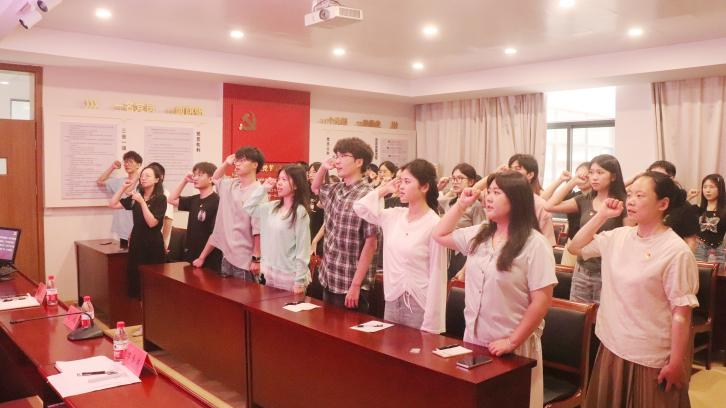 陈斌岚向毕业生党员送上毕业祝福,并带领全体党员们重温入党誓词。“我志愿加入中国共产党……”一句句誓言铿锵有力,党员们神情庄重,语气坚定,彰显了对初心的坚守与对信仰的忠诚。