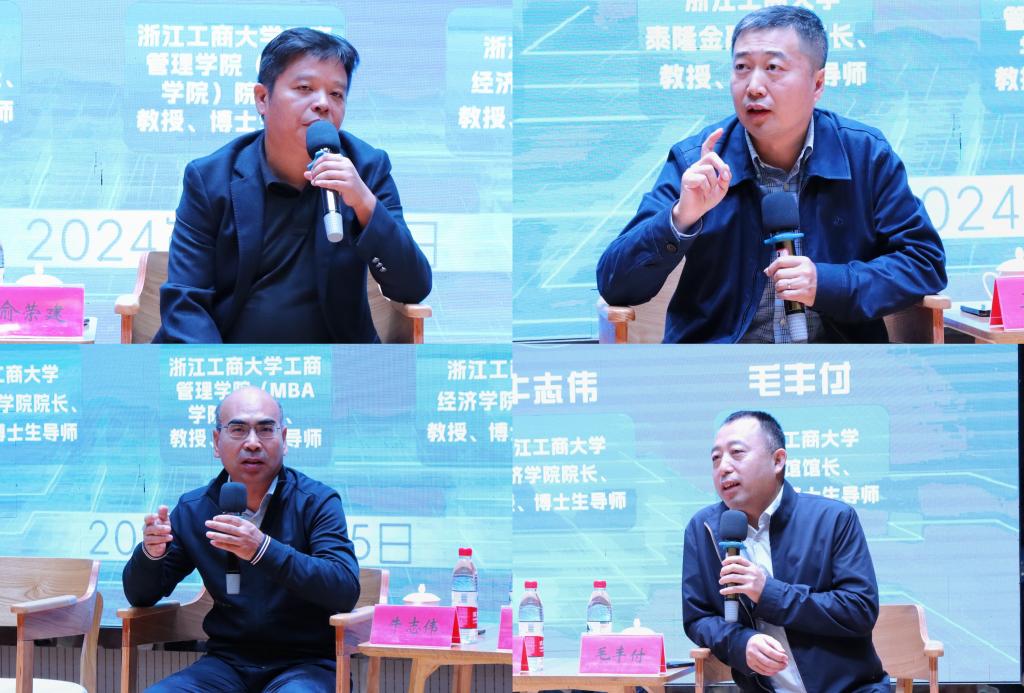 随后,俞荣建院长和牛志伟院长共同提出,商科类大学生应积极拥抱人工智能大模型,从AI如何赋能未来产业效率革命,探索无限可能的角度出发,培养自身的创新意识。他们还就人工智能如何赋能商科类专业学生的创新创业能力,给出了具体的模式和方向建议。