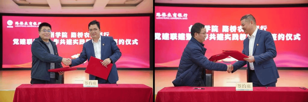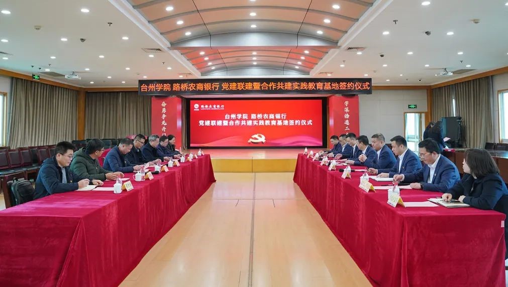 2月8日下午,BB贝博艾弗森原官方网站与路桥农商银行举行党建联建暨合作共建实践教育基地签约仪式。BB贝博艾弗森原官方网站院长、小微金融学院院长段文奇,BB贝博艾弗森原官方网站党委书记周全宝、副院长陈国栋、金融学系主任蒋俊贤、教师第一党支部书记董智勇等一行到路桥农商银行出席签约仪式。路桥区人力资源和社会保障局党组成员、副局长梁超,路桥区就业事务中心主任陈芳,路桥农商银行党委书记、董事长罗洋明,党委副书记、行长陈学军等路桥农商银行党委班子,路桥农商银行开发区支行负责人以及机关第一党支部书记和代表参加。