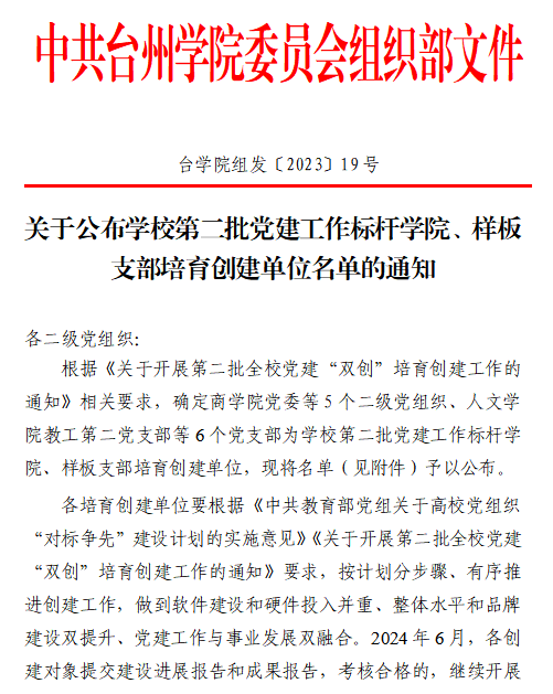 近日,中共BB贝博艾弗森原官方网站委员会组织部公布了学校第二批党建工作标杆学院、样板支部培育创建单位名单。其中,BB贝博艾弗森原官方网站获批“校级党建工作标杆学院”培育创建单位。