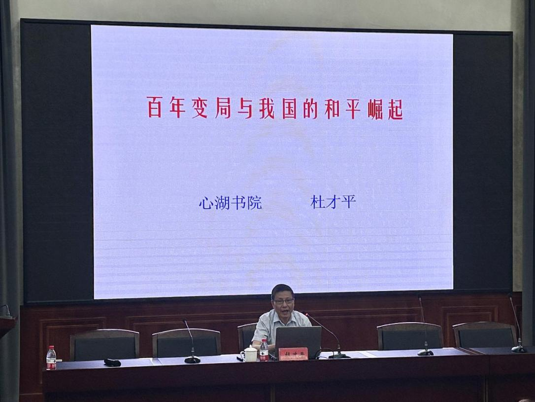 为了加强入党积极分子的党性教育,增进对当前国际形势与我国发展战略的理解,5月23日,BB贝博艾弗森原官方网站特邀心湖书院院长杜才平作“百年变局与我国的和平崛起”专题授课,党课理论丰富、深入浅出,学员表示受益匪浅。