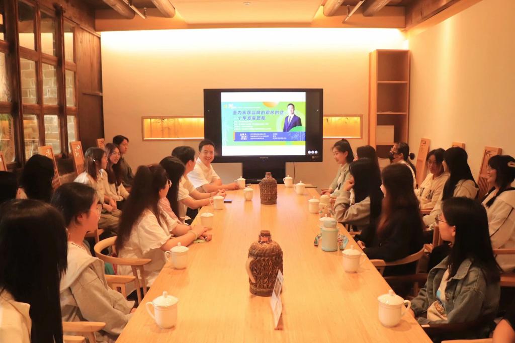 在至为家居竹生活馆,校友张至伟围绕着自己在校创业经历、实习实践经历、公司迭代升级历程等三方面进行了分享。他谈到,要善于把握机遇,在大学要积累经验,积极主动锻炼、展示自己。在创业期间,从父辈竹制产业出发,找到创业的切入点,利用大学在校以来积累的人脉关系,将自己的业务迅速拓展;利用学习到的待人接物和为人处世的道理,维系与客户的良好关系;利用所学的专业知识,对当今竹制家具市场进行研判和考察,对企业的产品迭代升级。