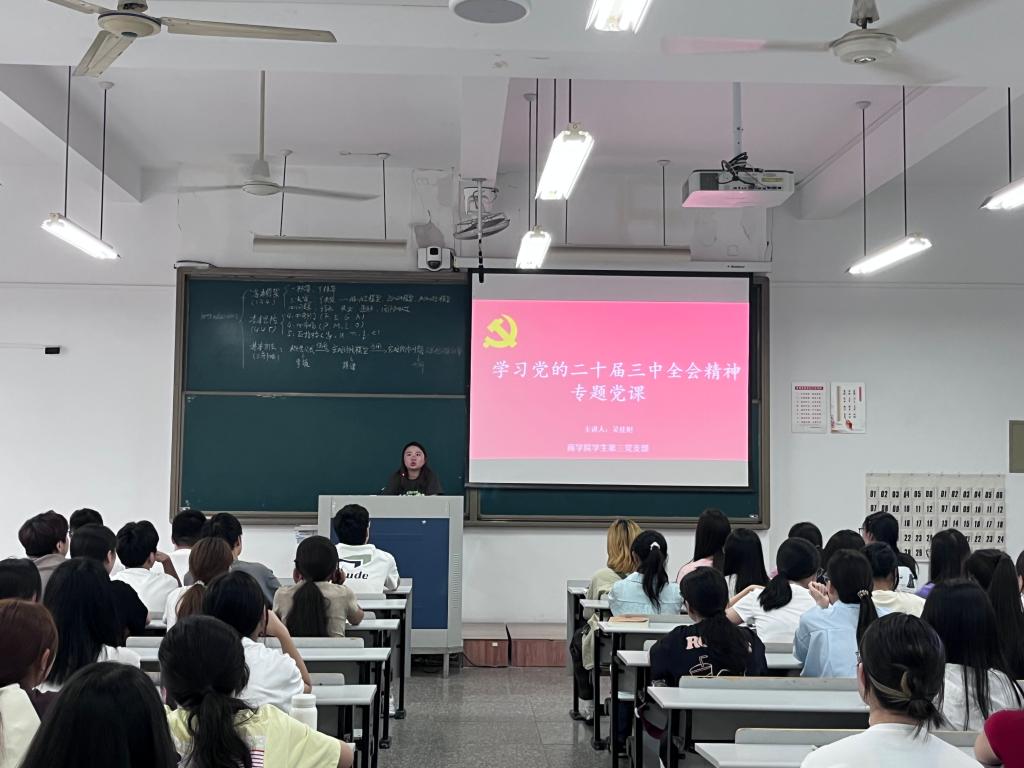 新生入党启蒙教育中,宣讲团成员们首先详细介绍了二十届三中全会的重点内容、历史地位与重大意义,带领大家学习《中共中央关于进一步全面深化改革、推进中国式现代化的决定》中的亮点举措以及三中全会精神中对青年成长成才提出的要求,引领大家学深悟透、以学促行。
