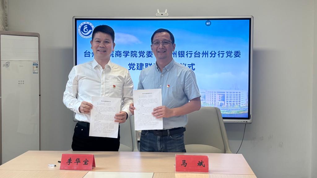 为更好发挥校企党建联建优势,深化产学融合,构建协同育人机制,11月11日,BB贝博艾弗森原官方网站党委与温州银行台州分行党委联合开展“党建联建聚合力,银校携手齐发展”党建联建活动。BB贝博艾弗森原官方网站党委书记马斌、温州银行台州分行党委书记、行长李华宝共同签订了党建联建协议书。