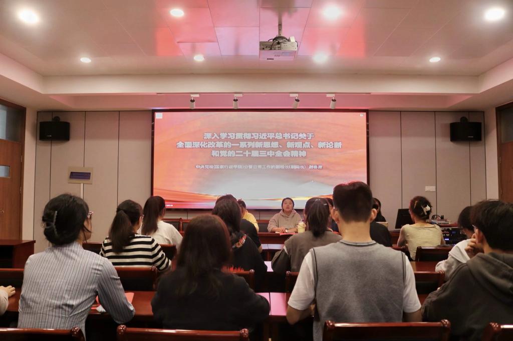 根据学校《关于开展科级及以下干部、党员学习贯彻党的二十届三中全会精神培训的通知》要求,此次培训紧紧围绕深入学习贯彻党的二十届三中全会精神,学生党员集体学习“深入学习贯彻习近平总书记关于全面深化改革的一系列新思想、新观点、新论断和党的二十届三中全会精神”视频课程,并就所学内容展开了交流讨论,参会同志们学习热情高涨、踊跃发言交流,学习效果良好。