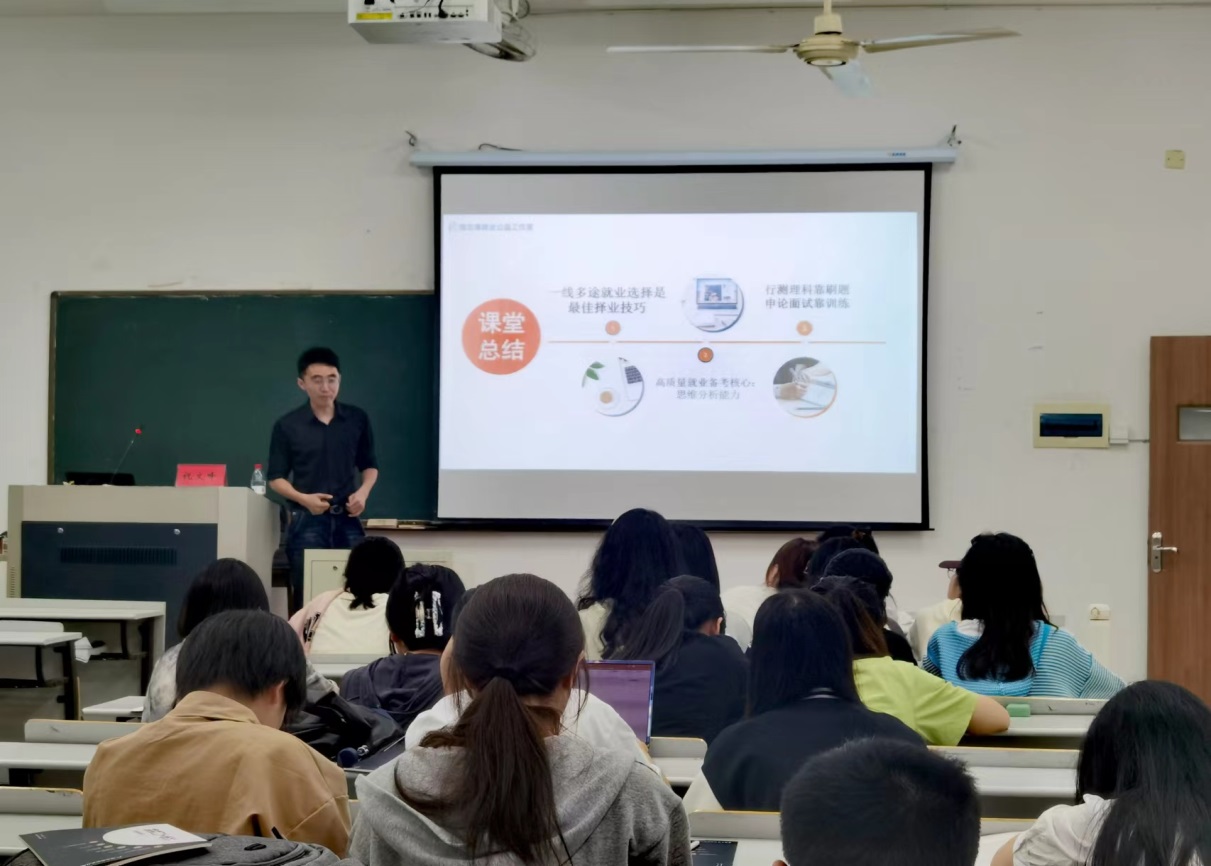 为丰富学生对高质量就业的认知,增强“一线多途”高质量就业报考信心,5月17日,BB贝博艾弗森原官方网站特邀浙江砺行教育科技有限公司总经理祝文峰为学生作《如何实现高质量就业》专题讲座,得到各年级同学广泛关注。