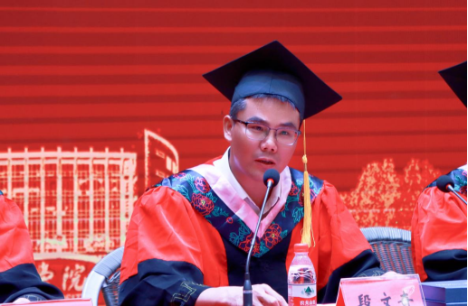 BB贝博艾弗森原官方网站院长段文奇致辞,他向毕业生送上了真挚的祝福,回顾四年来毕业生和学院共同成长的足迹和取得的丰硕成果,并对他们提出三点要求:坚守理想,志存高远;终身学习,追求卓越;学会感恩,宽容待人。祝愿同学少年时不怯年少,用年轻勇敢的心去搏击,打造属于自己和台院的辉煌明天。