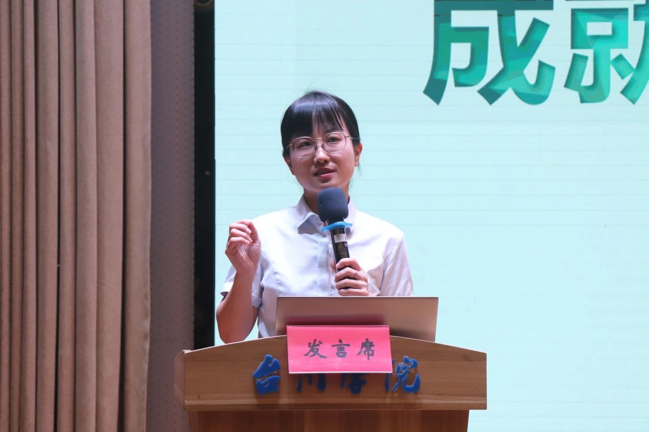 台州银行台州市区人力资源部总经理郑玲巧,现兼任23金融学班企业班主任。她积极与学生互动,了解新生们的大学目标,并指出了目标引领方向和行动成就未来的重要性。