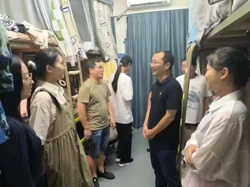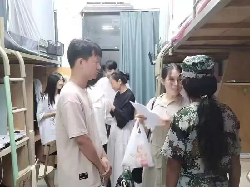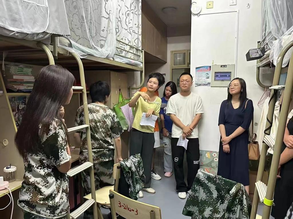 在走访过程中,老师们亲切地与同学们打招呼,了解他们的背景情况,询问他们来自哪里、衣食住行、生活是否能够习惯等方面的问题,并就如何合理安排作息时间,养成良好的学习习惯,注意个人卫生和寝室环境的整洁等,向他们提出建议,帮助他们更好地适应校园生活。老师们还了解了新生的未来规划,并鼓励他们相互交流,建立良好的寝室氛围,表示学院将会持续关注他们的学习和生活情况,并提供必要的帮助和支持。