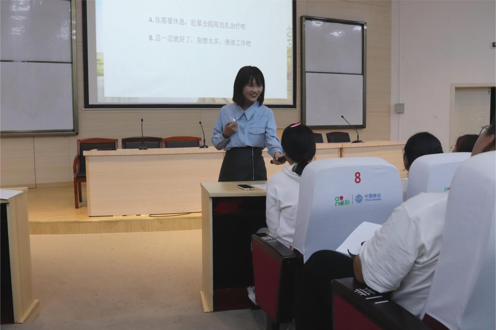 18:30讲座准时开始,王蕴瑾老师以举手的方式来了解同学们对于大学生活的满意分值及对日后的期待值,以此为切入点促进同学们对心理问题及心理健康的正确认识。《推开那扇门》这个台院自制的小短片,更是让同学们明白面对负面情绪及心理问题,要平常心对待,也可以及时告知家人朋友寻求帮助。来自哈佛大学的一个小游戏更是将活动的氛围推上高潮,同学们需要从展示图中数出多边形的数量,可实际上大家的答案并不正确,同学们应注重生活的其他小美好,不能仅仅只关注学习。最后,王老师向同学们介绍了校内寻求心理咨询的方法与途径,希望遇到心理问题的同学能够积极寻求帮助,健康快乐地生活在台院。