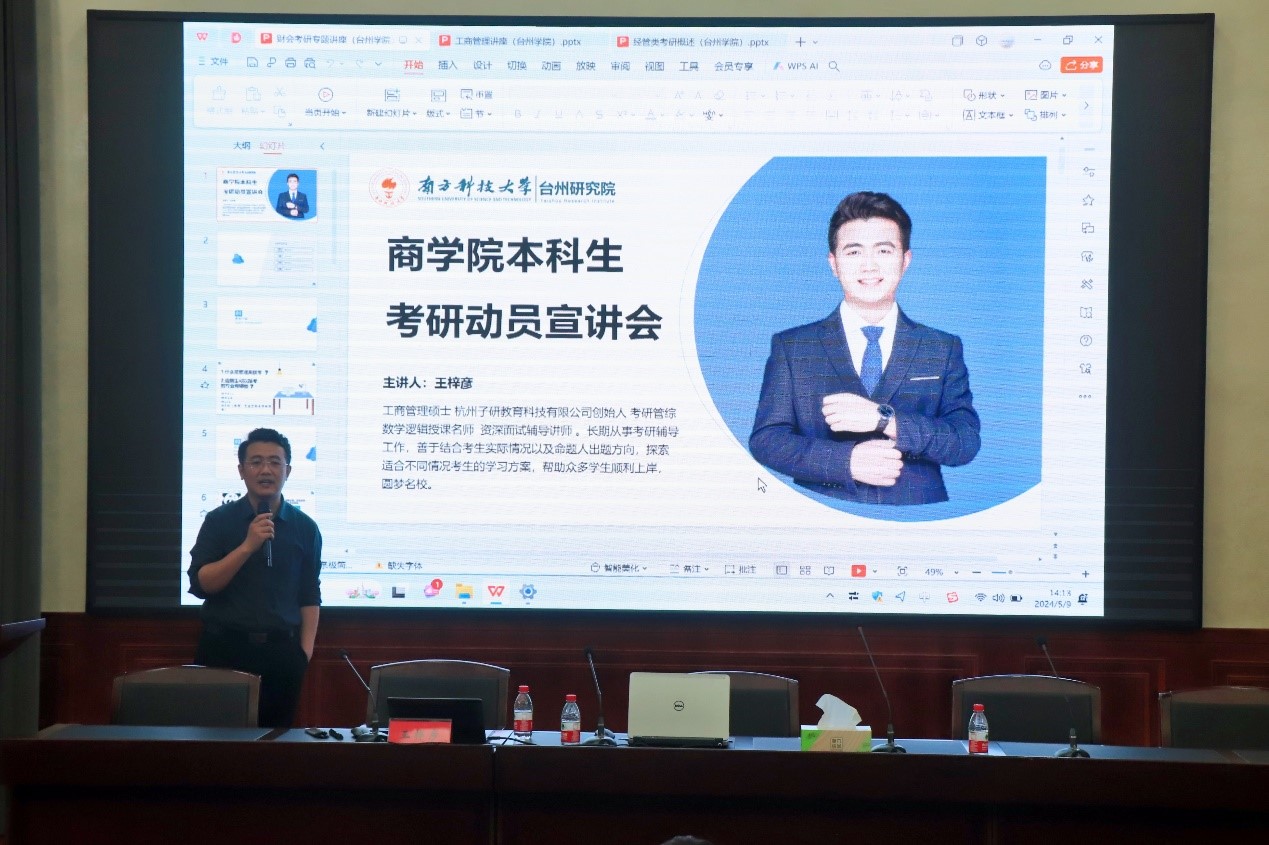 为激发学生对提升学历的热情,增加对考研的理解,以提前做好个人规划,5月9日下午,在BB贝博艾弗森原官方网站大楼506召开了考研动员分享会。本次会议特邀南方科技大学及台州研究院的王梓彦老师进行专题讲座,会议由BB贝博艾弗森原官方网站副院长陈国栋主持,相关师生代表参加会议。