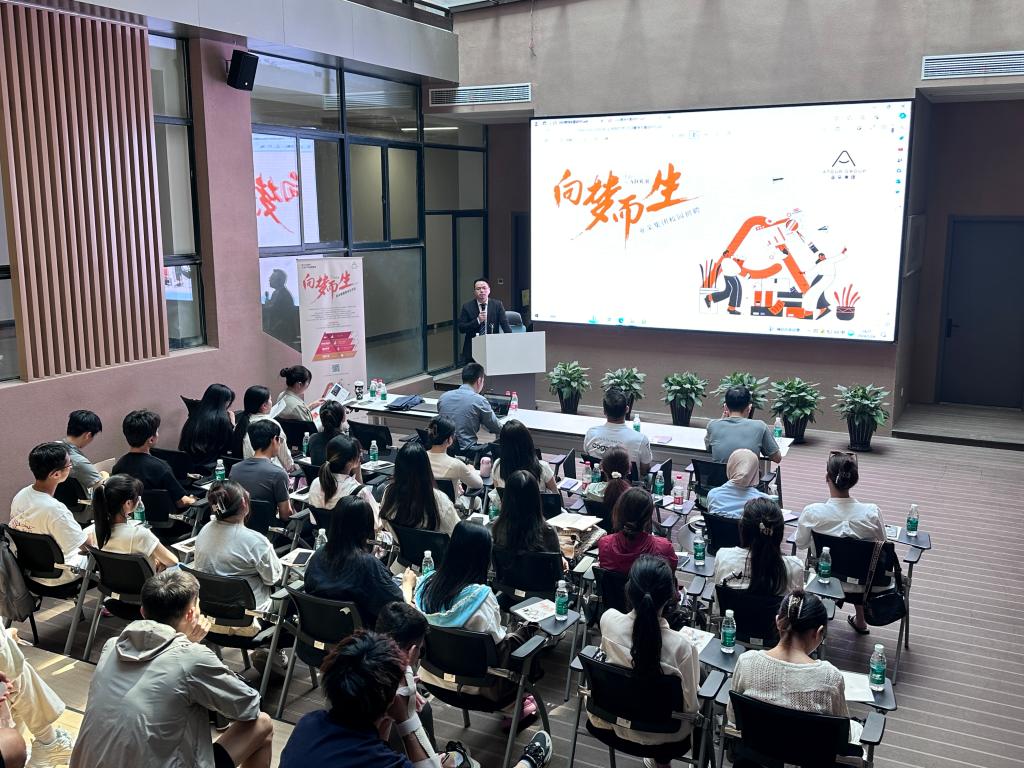 会议前,若谷带领在场同学观看了亚朵酒店的创立与发展历程视频,使同学们对亚朵酒店有了初步了解。会议伊始,若谷详细介绍了亚朵酒店的概况及其独特的企业文化,特别强调了酒店跨界主题和其回归生活方式的理念。随后,他从招聘岗位、薪酬福利、员工培训和成长路径四个方面,全面展示了亚朵酒店健全的招聘与培训体系。此外,若谷还向大家介绍了酒店丰富多样的团队建设活动,从而提升员工业余生活品质。最后,亚朵酒店宁波战区省政委唐生为同学们答疑解惑,现场氛围活跃。