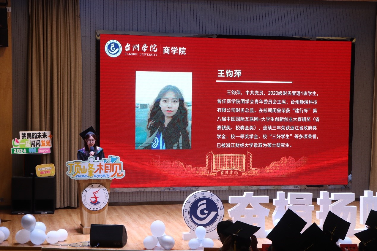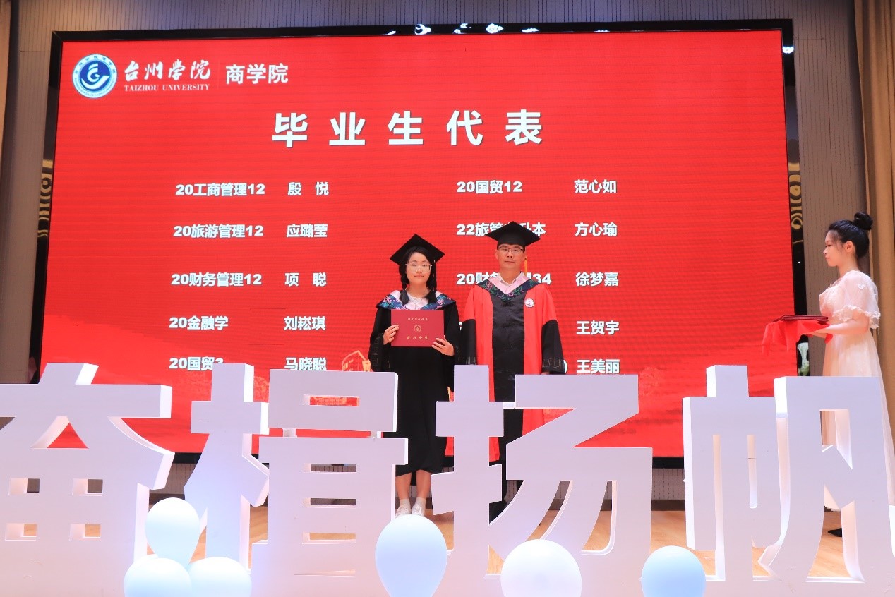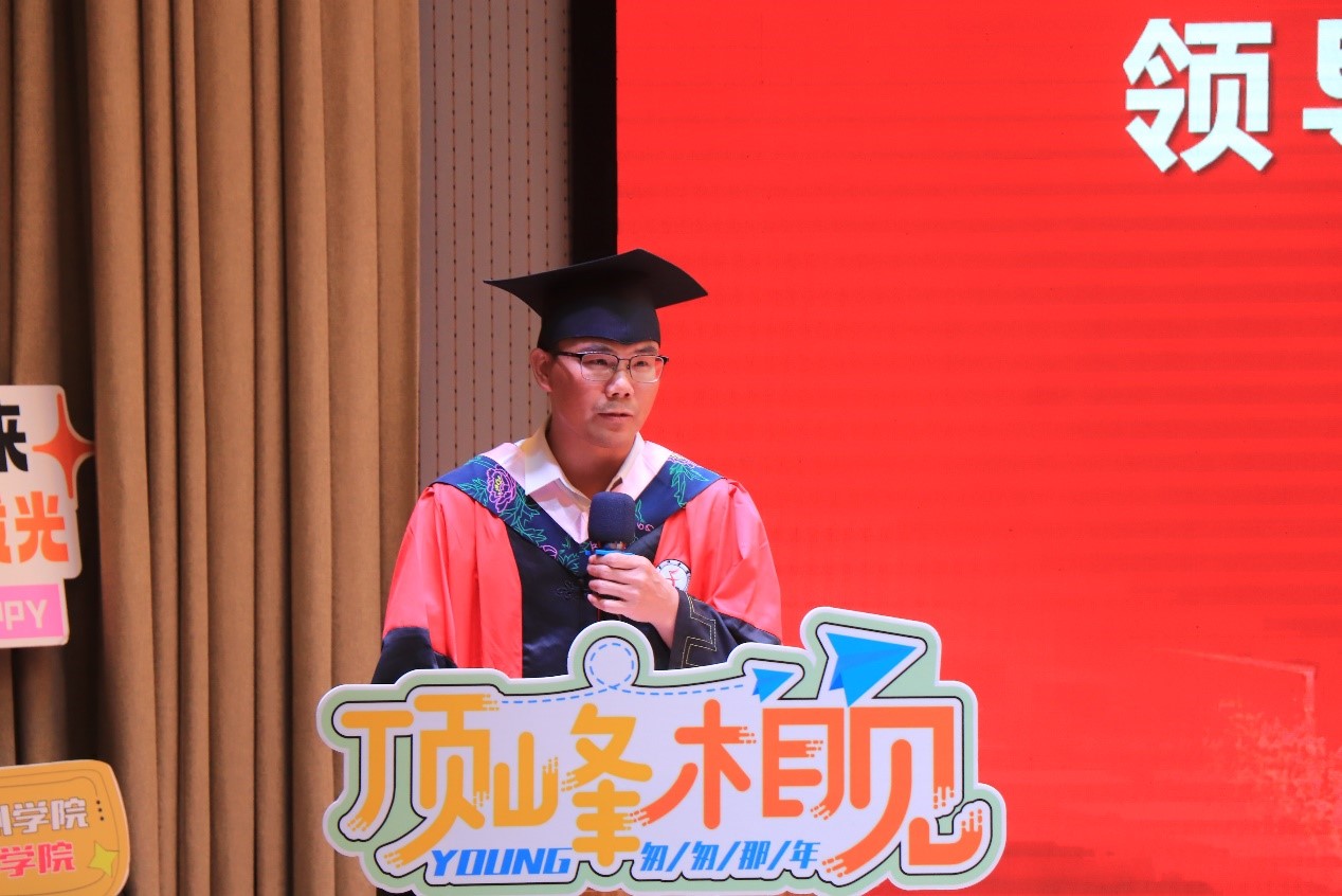 毕业生代表王钧萍同学感恩母校的栽培,并期许光明的未来。教师代表叶才华老师寄语同学们心存和善,知恩感恩;志存高远、勤于进取;求真务实、脚踏实地;笑对生活、心向阳光。优秀校友代表、2004届旅游管理专业学长史春波结合自己的学习经历和个人成长勉励同学们要心怀感恩、心存敬畏,做一个有理想有目标的人。