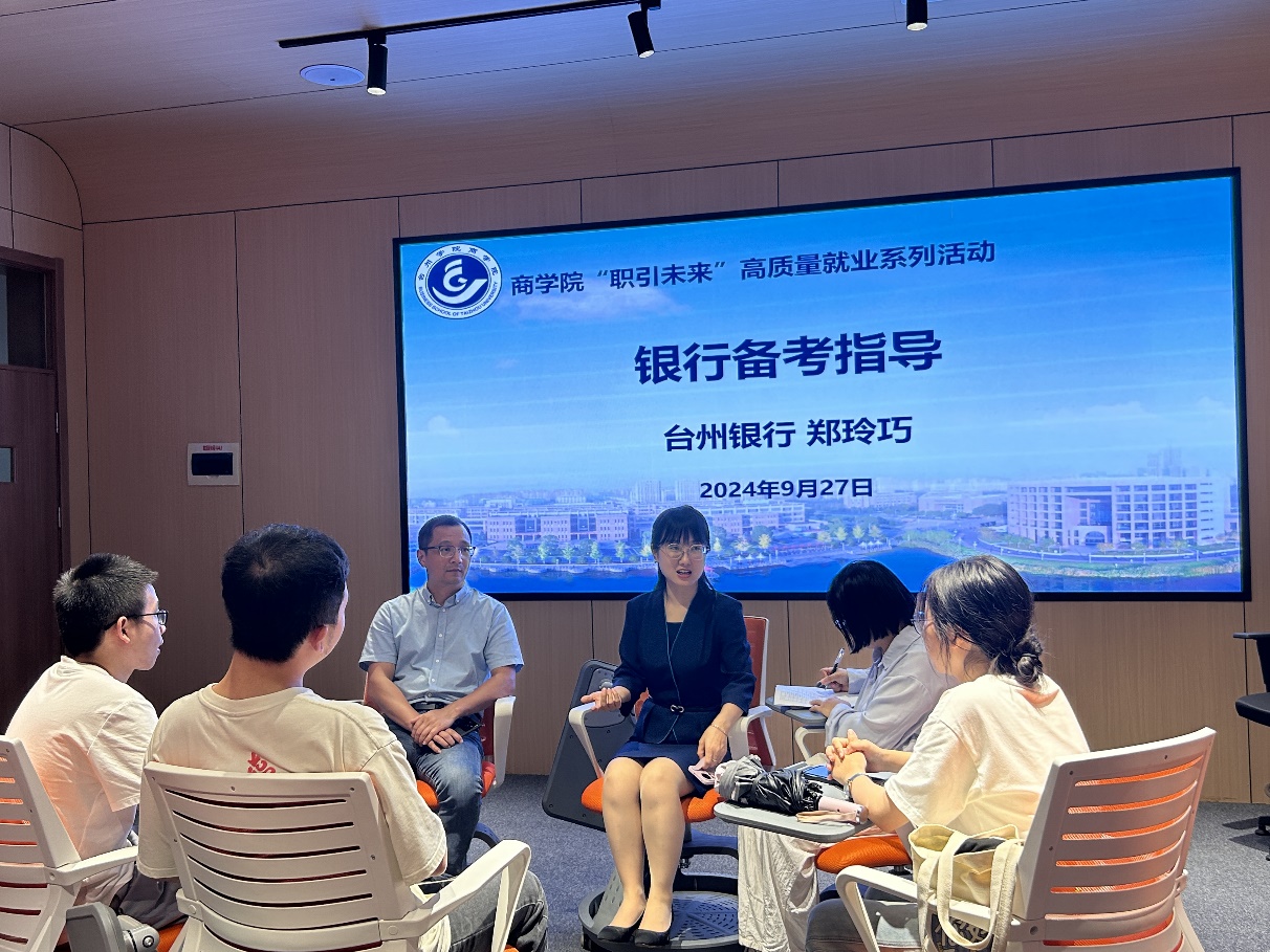 为扎实推进毕业生就业工作,提高学生在银行业求职中的竞争力,9月23日至27日,BB贝博艾弗森原官方网站邀请泰隆银行、建设银行、台州银行招聘负责人走进校园,和同学面对面交流银行备考事宜。BB贝博艾弗森原官方网站党委书记马斌出席活动。BB贝博艾弗森原官方网站就业辅导员赵之遐,各专业应届毕业生参加活动。