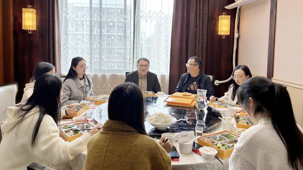 午餐会现场,氛围轻松而活跃,丁书记与学生们围坐一堂,亲切交流,话题涵盖学习进展、日常生活以及未来职业憧憬等多个维度。同学们满怀热忱,积极分享各自在学业上的感悟与生活中的体验,丁书记专注倾听,不时点头予以肯定,并对学生们的未来发展规划给予了指导。他强调,学生时代作为人生的“拔节孕穗期”,做好规划是十分重要的,鼓励同学们尽早锚定目标,深度挖掘自身兴趣特长,紧密契合社会发展需求,科学规划自身未来。