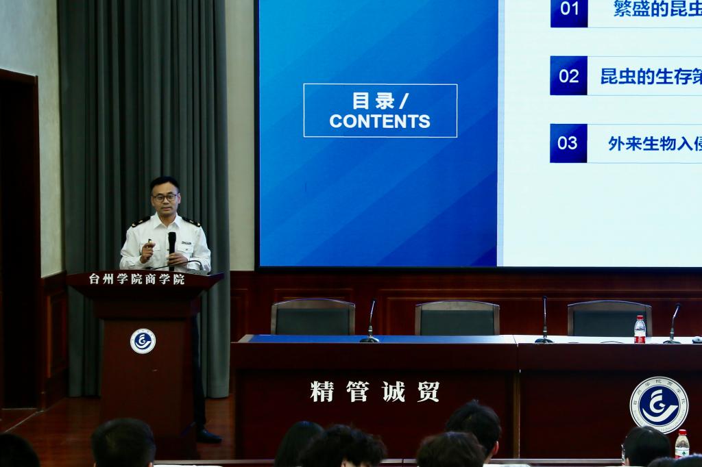 活动中,台州海关高级工程师张文俊、企管科副科长任超宇、法规科副科长徐伟伟分别围绕外来生物入侵防控、海关AEO制度及认证程序、知识产权海关保护展开宣讲。三位专家凭借扎实的专业功底和丰富的实践经验,将政策理论与实务操作有机结合,通过互动问答、案例分析等多种形式,使专业知识的讲解既生动易懂又富有深度。现场气氛活跃,师生们纷纷表示受益匪浅。