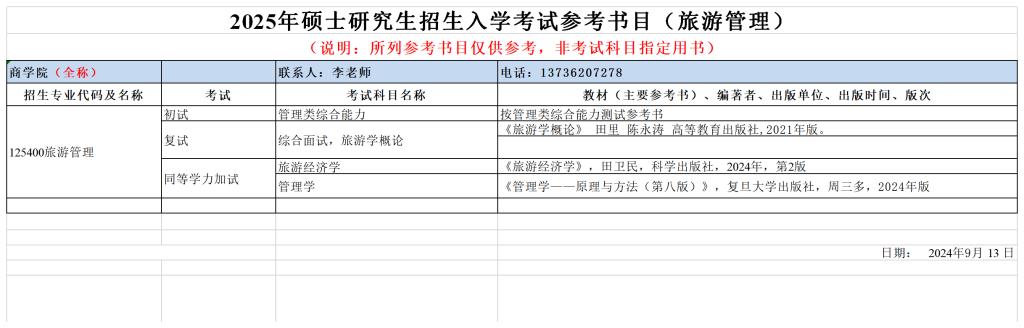 2025年硕士研究生招生入学考试参考书目(旅游管理).xlsx