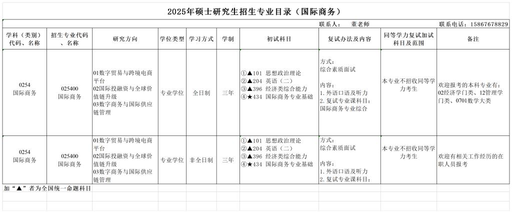 2025年硕士研究生招生专业目录(国际商务).xlsx