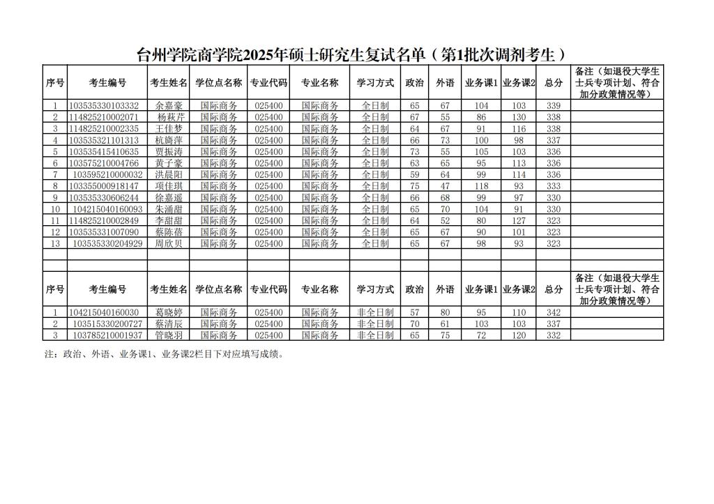 注:政治、外语、业务课1、业务课2栏目下对应填写成绩。 |