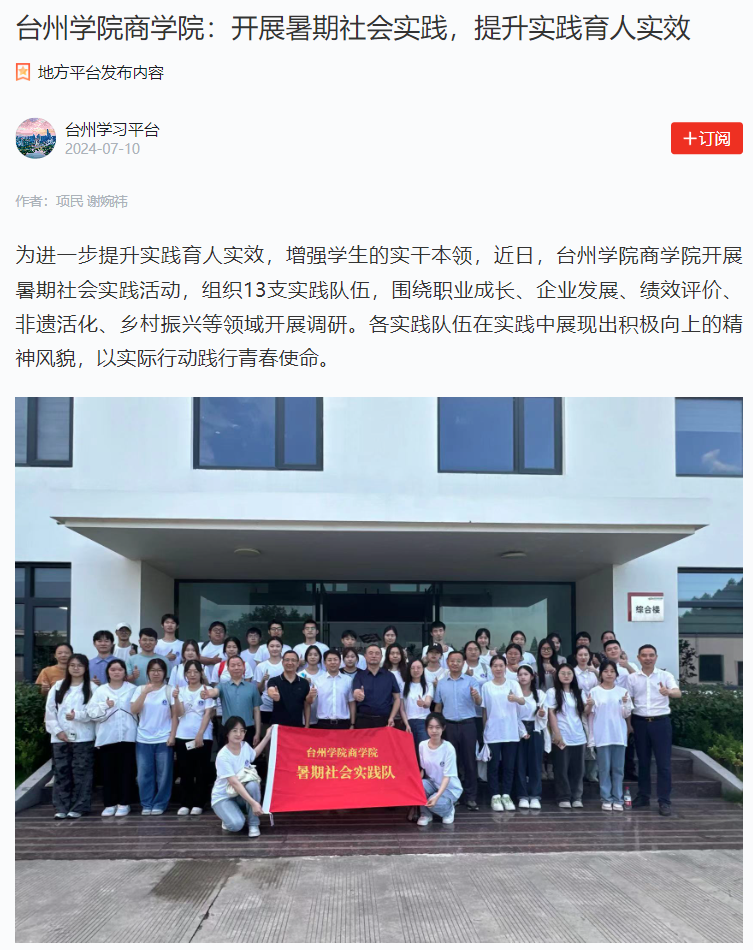 为进一步提升实践育人实效,增强学生的实干本领,近日,BB贝博艾弗森原官方网站开展暑期社会实践活动,组织13支实践队伍,围绕职业成长、企业发展、绩效评价、非遗活化、乡村振兴等领域开展调研。各实践队伍在实践中展现出积极向上的精神风貌,以实际行动践行青春使命。