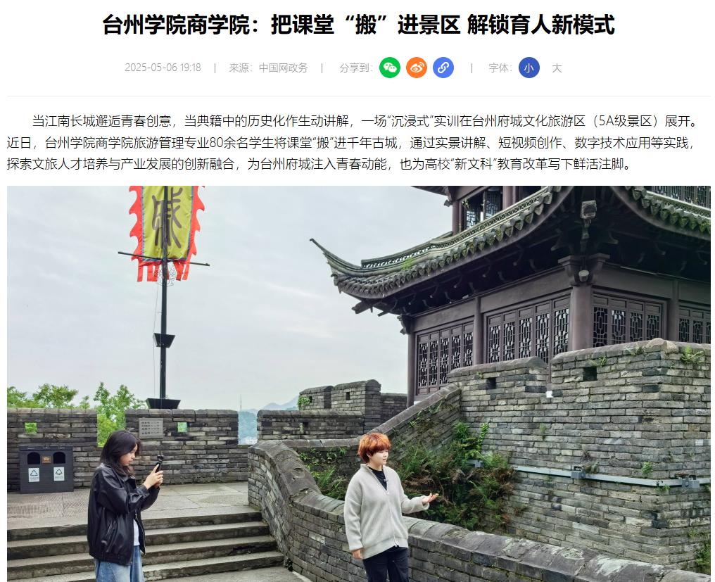 当江南长城邂逅青春创意,当典籍中的历史化作生动讲解,一场“沉浸式”实训在台州府城文化旅游区(5A级景区)展开。近日,BB贝博艾弗森原官方网站旅游管理专业80余名学生将课堂“搬”进千年古城,通过实景讲解、短视频创作、数字技术应用等实践,探索文旅人才培养与产业发展的创新融合,为台州府城注入青春动能,也为高校“新文科”教育改革写下鲜活注脚。