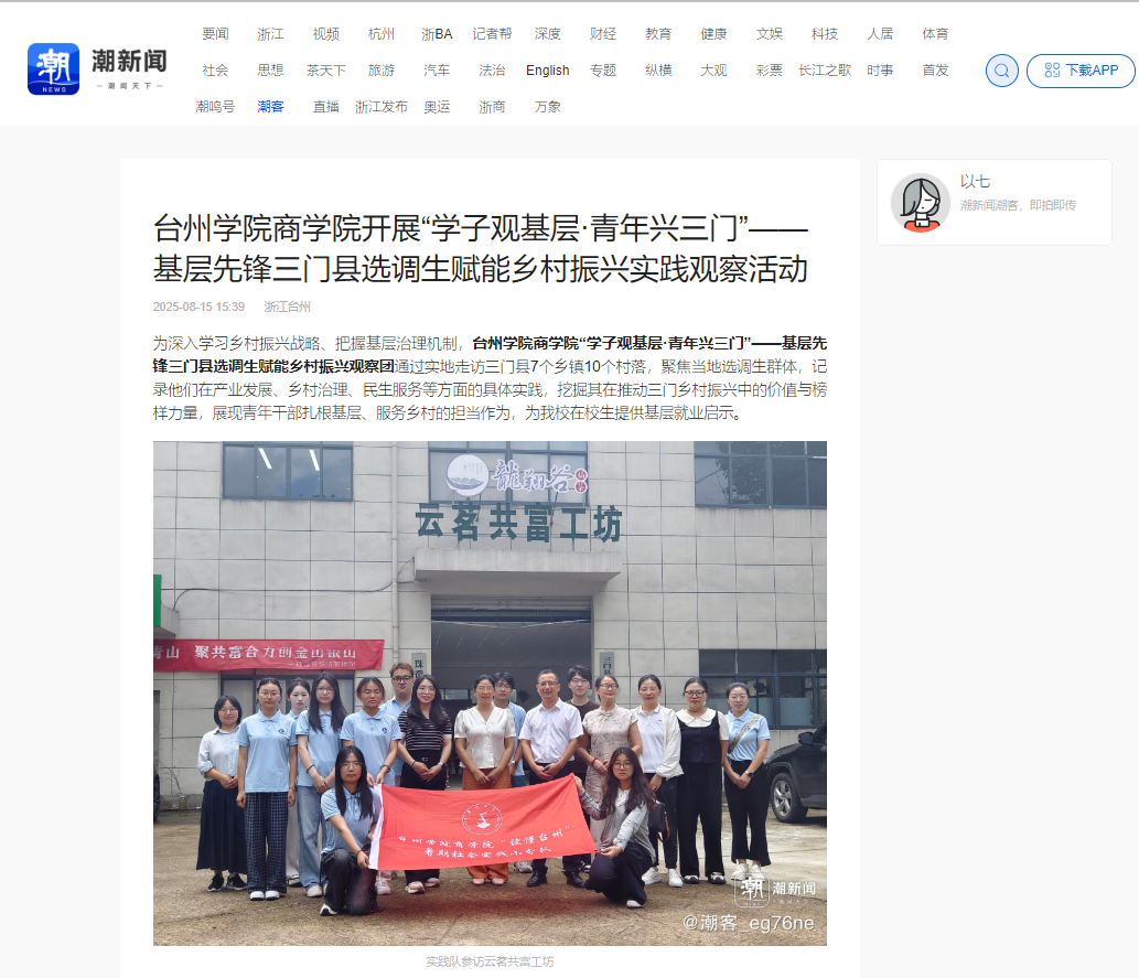 为深入学习乡村振兴战略、把握基层治理机制,BB贝博艾弗森原官方网站“学子观基层·青年兴三门”——基层先锋三门县选调生赋能乡村振兴观察团通过实地走访三门县7个乡镇10个村落,聚焦当地选调生群体,记录他们在产业发展、乡村治理、民生服务等方面的具体实践,挖掘其在推动三门乡村振兴中的价值与榜样力量,展现青年干部扎根基层、服务乡村的担当作为,为我校在校生提供基层就业启示。